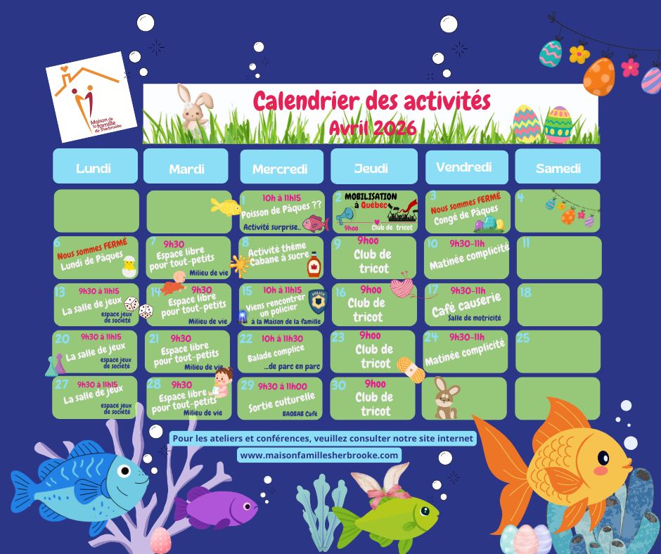 Inscription recquise par courriel à : activites@maisonfamillesherbrooke.com