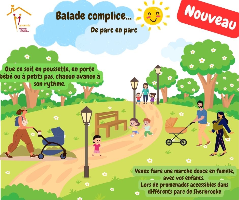 Venez faire une marche douce en famille avec vos enfants, lors de promenades accessibles dans différents parc de Sherbrooke.
